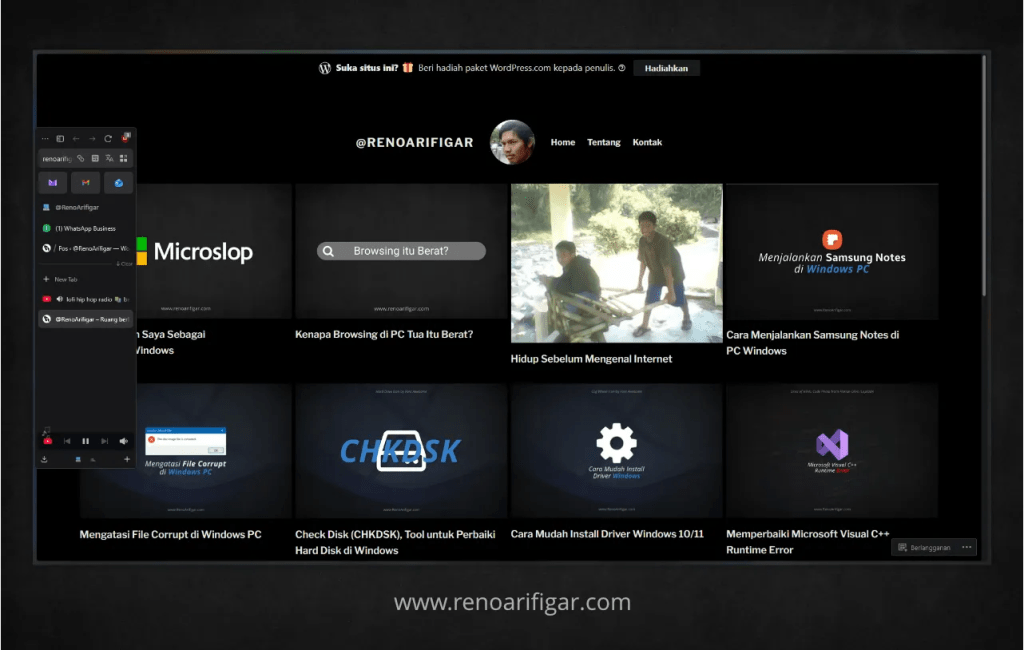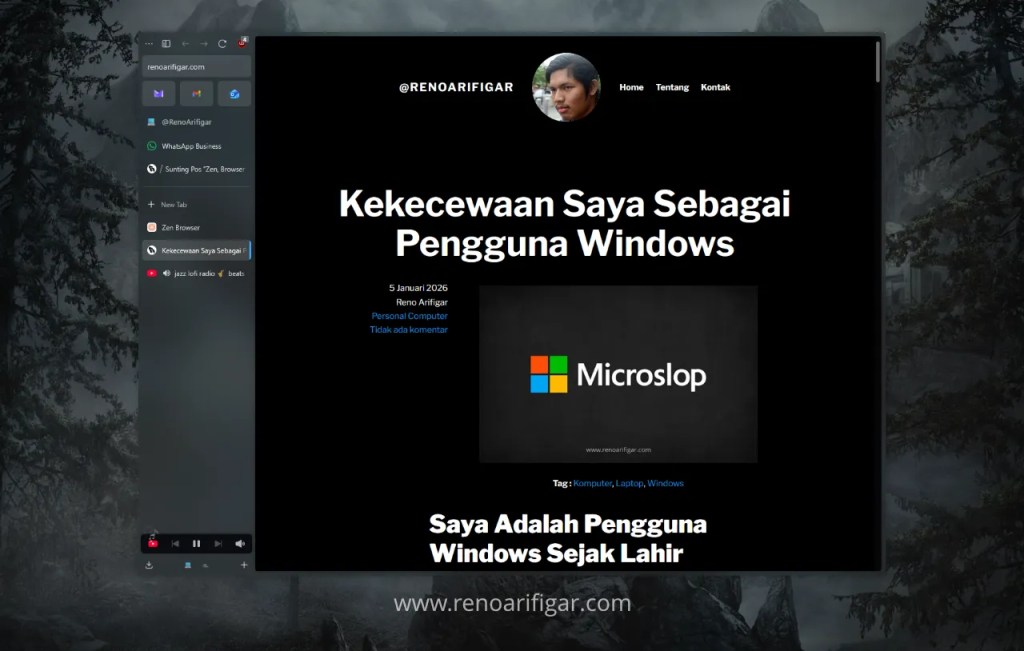 Dan, browser yang menjadi pilihan saya adalah Zen Browser. Browser minimalis dengan Tampilan yang cakep banget! Tidak banyak menu dan tombol, cukup yang penting-penting saja yang ditampilkan.