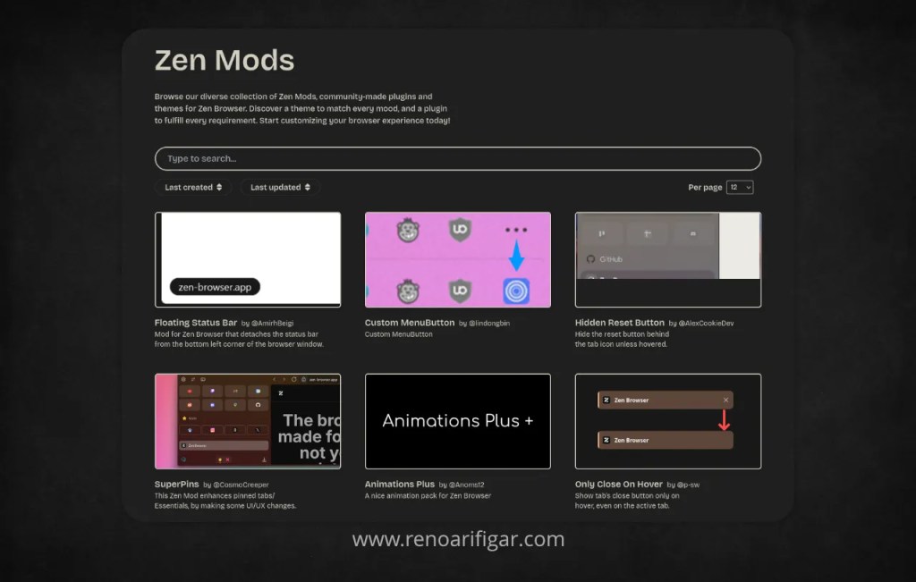 Berbagai modifikasi ini bisa kita unduh secara langsung melalui halaman resmi di situs Zen Browser berikut : https://zen-browser.app/mods/