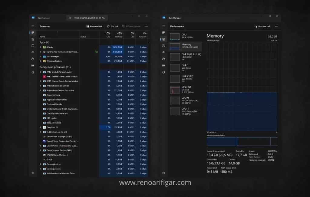 Semua ini akan sangat terasa ketika kita Browsing, aktivitas yang sudah pasti kita lakukan setiap hari. Sekarang ini, 1 tab browser bisa memakan ruang di RAM antara 400MB sampai 600MB. Belum lagi kalau kita Streaming Video atau Lagu sembari bekerja pakai Web App seperti WhatsApp Web, Google Docs dan Canva. Penggunaan browser dengan pola seperti ini bisa menghabiskan 3 sampai 4GB dari kapasitas RAM.