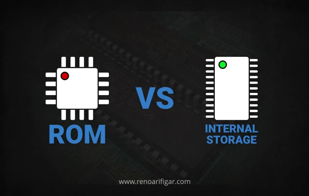 | Internal Storage dapat berbentuk Chip eMMC, UFS ataupun NVMe | ROM dapat berbentuk Chip EEPROM atau SPI Flash |
